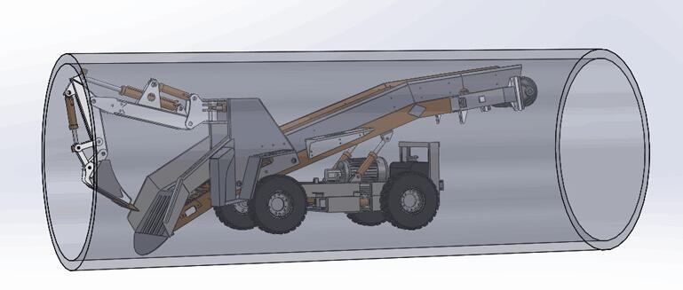 要在頂管內工作,必須要求扒渣機機形小,重心低,設計方面能夠在頂管弧形斷面進行高效率的開挖、掘進、采集、輸送、裝卸。